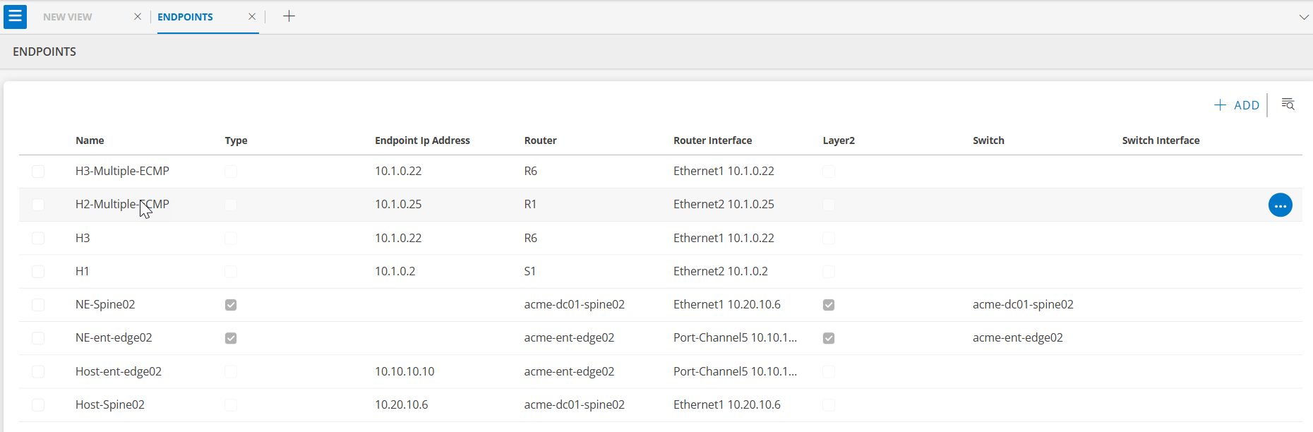 Select Endpoints under QUICK LINKS.The ENDPOINTS page shows a list of previously added endpoints used for path analysis.