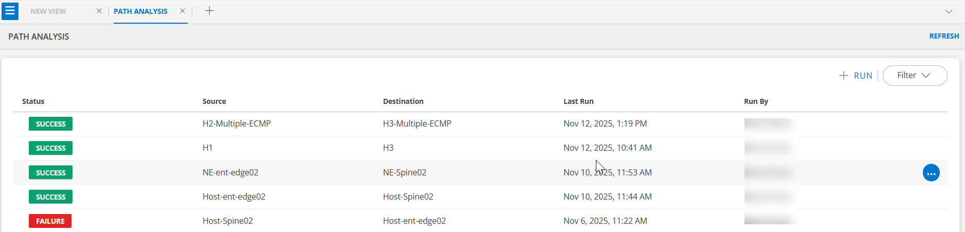 - Each Path Analysis run will have one of the statuses: SUCCESS, FAILURE, or IN PROGRESS.
